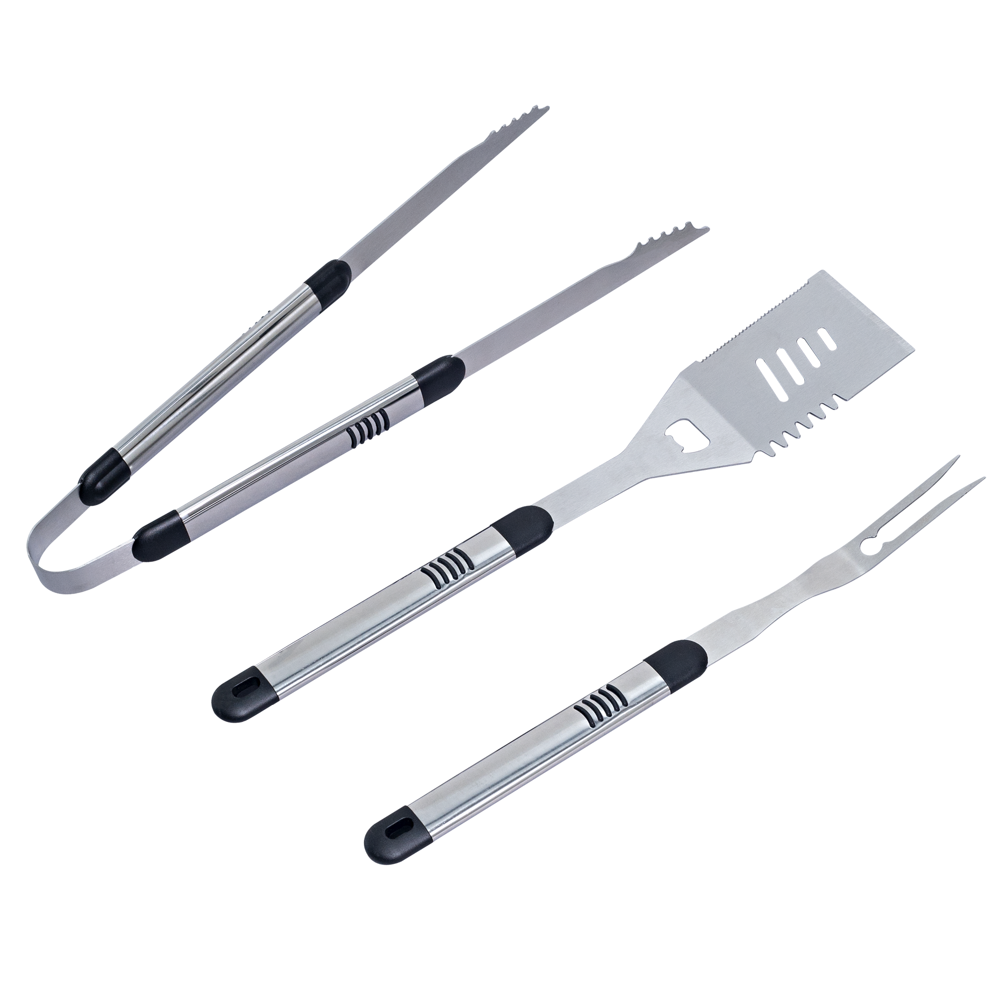 Compacto e essencial, esse kit é composto por 1 espátula, 1 pinça e 1 garfo. Dessa forma, ele contribui para que o churrasqueiro tenha mais praticidade e conforto em cada preparo.
