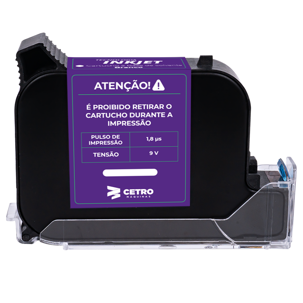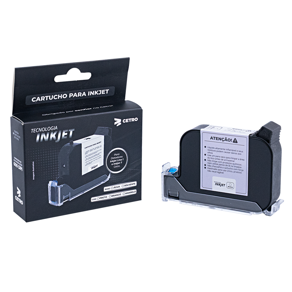 O Cartucho para Inkjet à Base de Solvente da Cetro é desenvolvido exclusivamente para o Datador Inkjet Line 1 e para o Datador Inkjet Handjet 7 da Cetro. Com rendimento em média de 800.000 caracteres, com largura da fonte na média de meio milímetro, o Cartucho à base de solvente é de alta aderência, garantindo nitidez e alta resolução na impressão. Ele é desenvolvido para realizar o processo em diversos tipos de superfícies, como: papelão, papeis em geral, vidros, plásticos, garrafas e muitos outros tipos de embalagem.