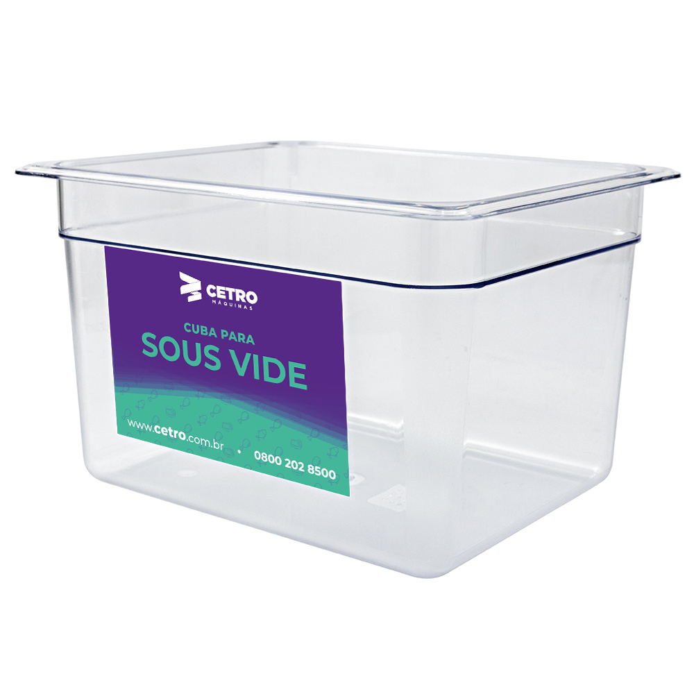 A Cuba de Acrílico é perfeita para ser usada com a linha de Sous Vide CSVC 84, CSVC 95 e CSVC 100 da Cetro que, por sua vez, são equipamentos práticos e portáteis que trazem o conceito moderno de cozinhar alimentos previamente selados a vácuo em 'banho maria' (imerso em água quente), o que mantém a temperatura controlada em sua exatidão, permitindo que o alimento não passe do ponto de cozimento ideal, tornando a Sous Vide a máquina perfeita para a sua cozinha.