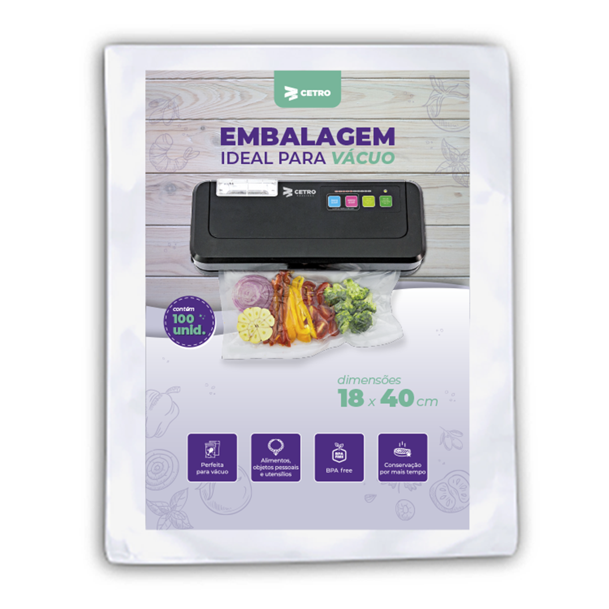 As Embalagens a Vácuo da Cetro têm como diferencial a forma pela qual são fabricadas, pois são produzidas com Nylon Poli, livres de Bisfenol A, com alta resistência e seguindo padrões internacionais de qualidade. Para máquinas de marcas diferentes da Cetro, consulte a compatibilidade.