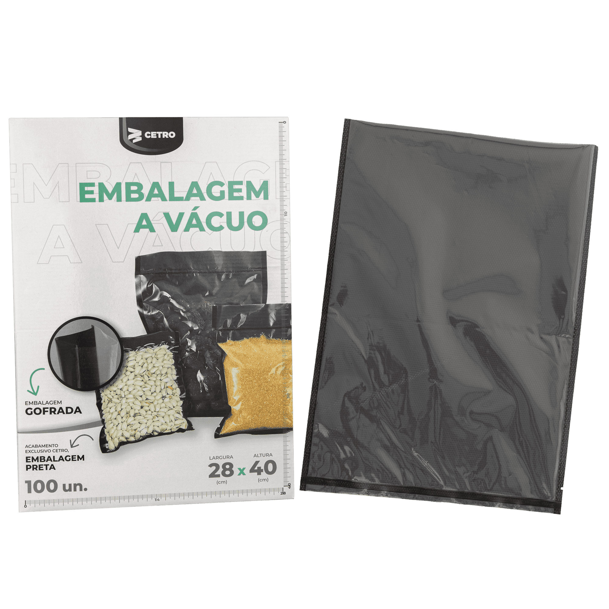 As embalagens gofradas pretas da Cetro são produzidas com alta tecnologia em Nylon Poli e são livres de bisfenol A, seguindo padrões de qualidade internacional. Com 27 micras e 3 barreiras de proteção, elas podem ser utilizadas em qualquer seladora a vácuo que aceite embalagens gofradas.