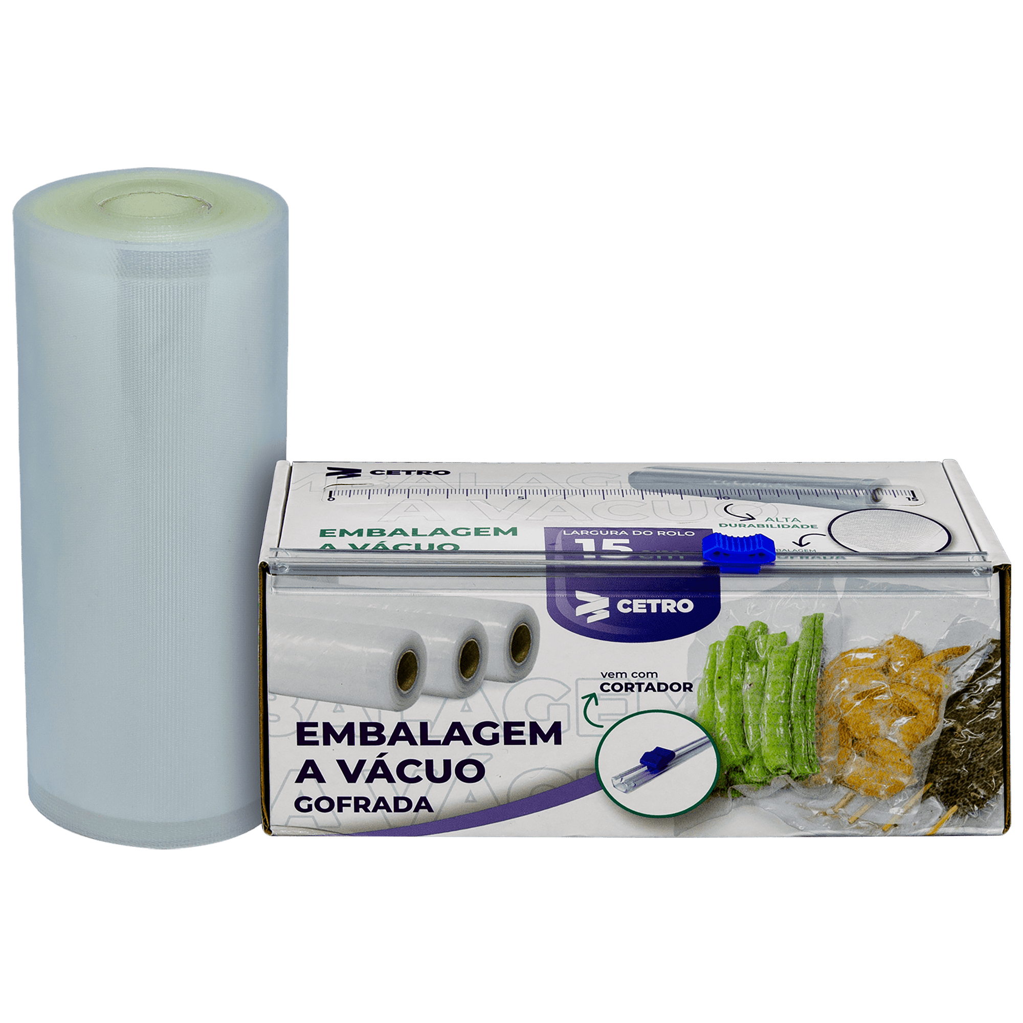 As embalagens gofradas em rolo transparente da Cetro são produzidas com alta tecnologia em Nylon Poli e são livres de bisfenol A, seguindo padrões de qualidade internacional. Com 27 micras e 3 barreiras de proteção, elas podem ser utilizadas em qualquer seladora a vácuo que aceite embalagens gofradas.
