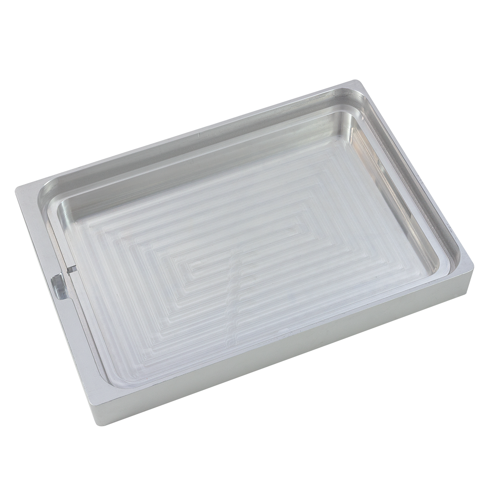Fabricado em Alumínio este molde oferece alta resistência em todo o processo de selagem a vácuo da Seladora Skinpack. Feito sob medida, o molde possui tamanho específico para cada bandeja plástica.