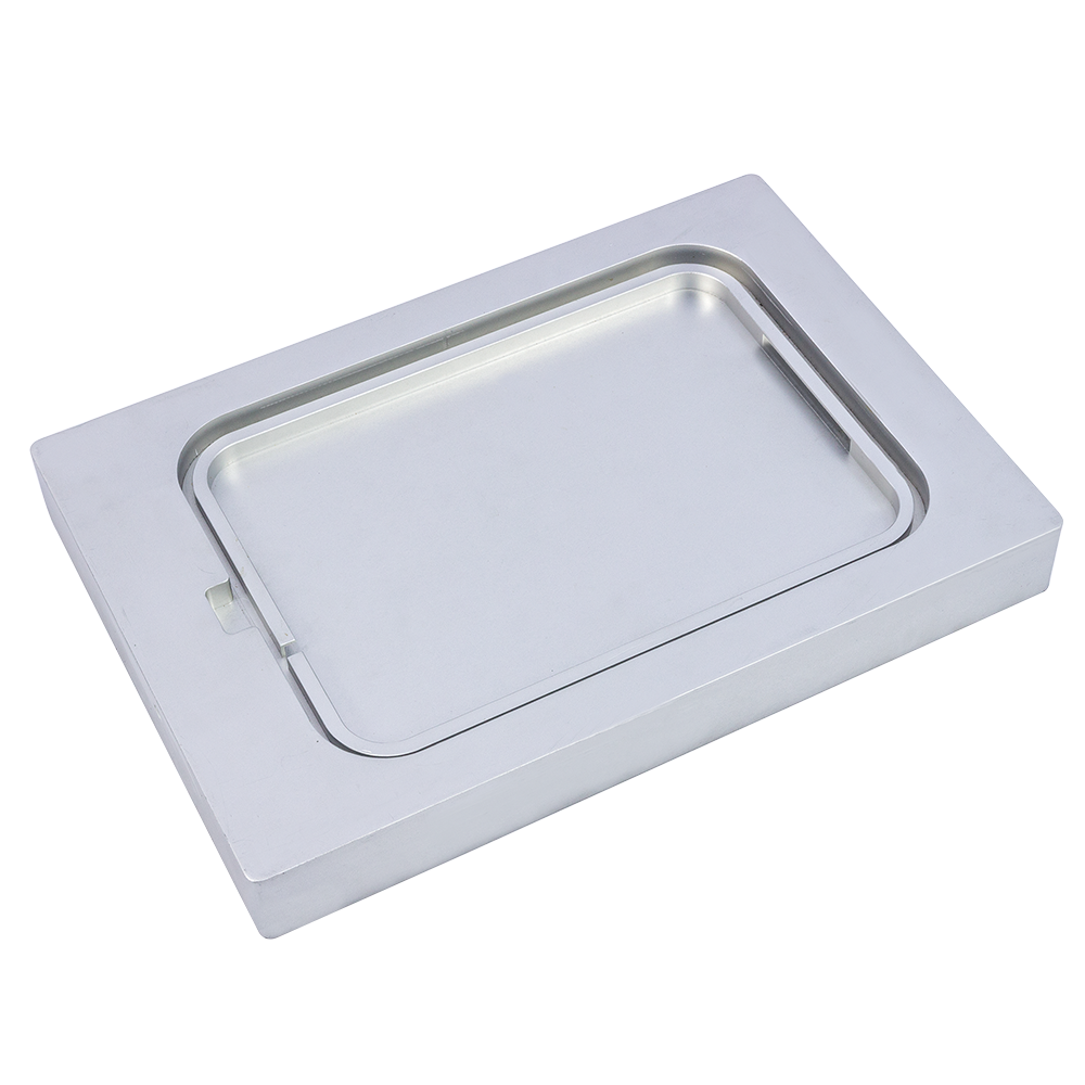 Fabricado em Alumínio este molde oferece alta resistência em todo o processo de selagem a vácuo da Seladora Skinpack. Feito sob medida, o molde possui tamanho específico para cada bandeja plástica.