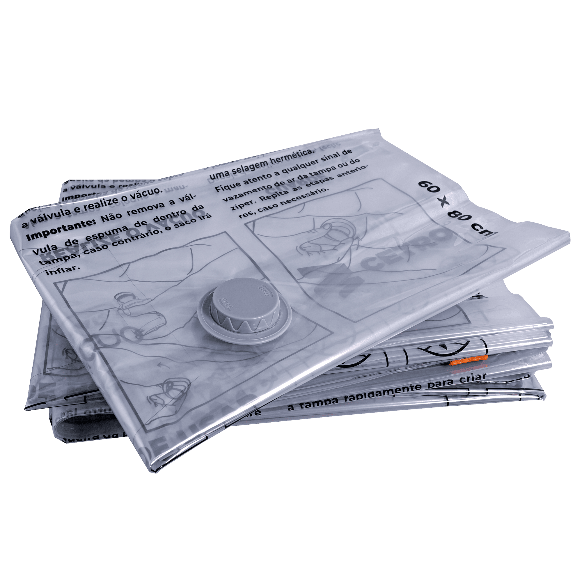 O Saco a Vácuo Hermético com Válvula de Sucção é a embalagem ideal para ser utilizada com a Bomba de Vácuo da Cetro. Sua versatilidade de uso permite que ele se adapte ao formato dos itens embalados, facilitando seu armazenamento e conservação em ambientes domésticos e comerciais.